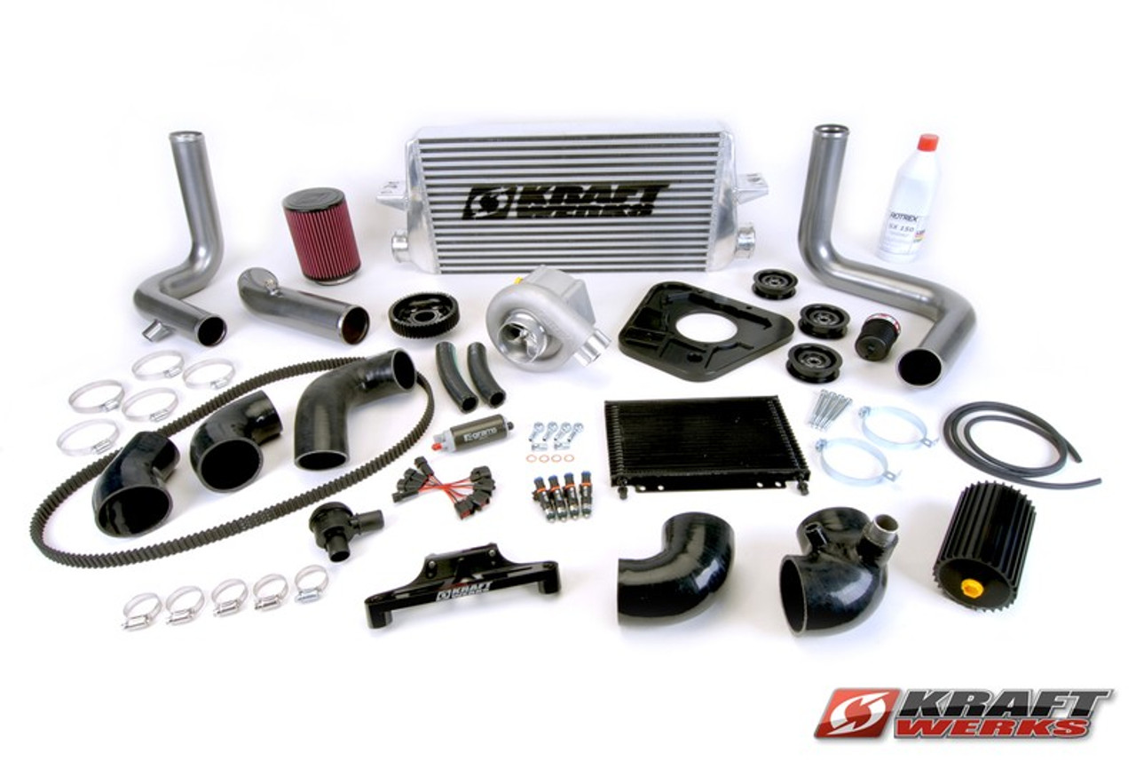 The 2000-2009 Honda S2000 Kraftwerks Supercharger kit equipped with the new efficient and more powerful upgraded C38-91 Rotrex Centrifugal Blower. This supercharger system when mated to the high-revving and efficient S2000 motor produces great gains, all while keeping cool and giving great drivability and reliability. The install is bolt-on ready and easy to do. Everything you need comes with the kit and the power output is great for street or track. Kraftwerk systems produce a more usable linear power that keeps traction and is more friendly to engine since there are less spikes in power. These systems also have self contained oiling systems and keep cooler than the standard supercharger turbocharger systems of today.